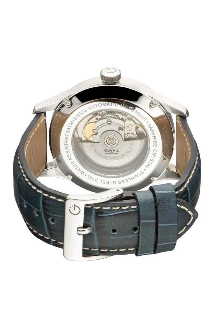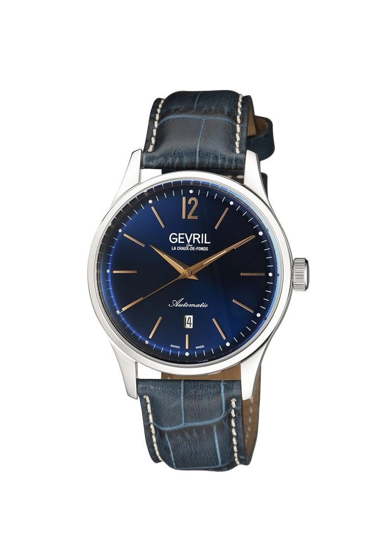 Gevril Five Points Men’s 4253A Swiss Made Automatic, Sellita SW200 Movement Genuine Blue Italian Leather Luminous Date Watch