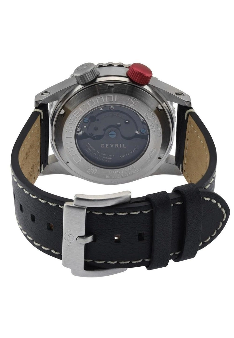 Gevril GV2 Contasecondi Men’s Black/Red Dial Black Calfskin Leather Watch