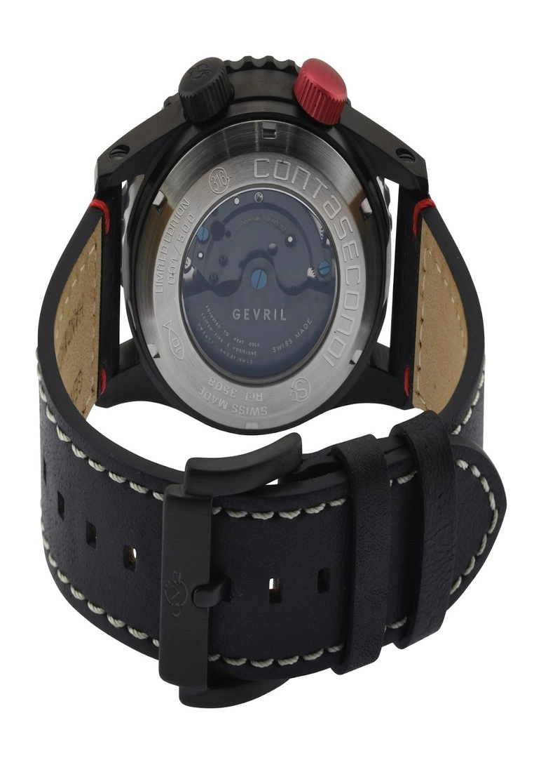 Gevril GV2 Contasecondi Men’s Silver/Red Dial Black Calfskin Leather Watch