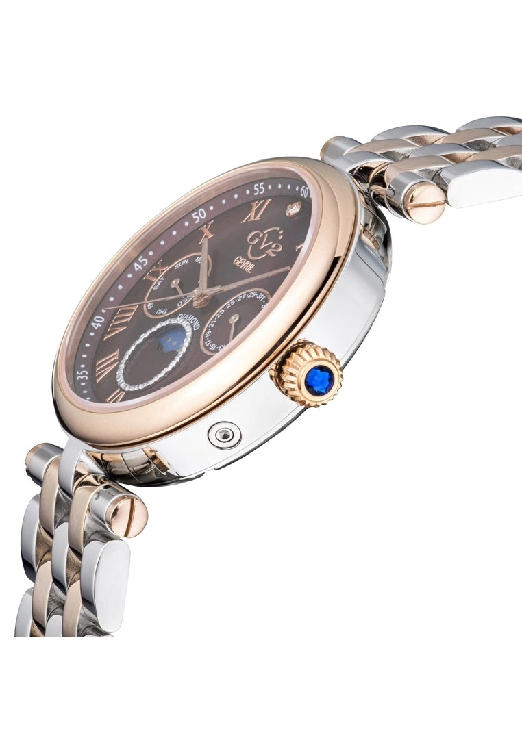 GV2 Women’s Swiss Quartz Watch from the Florence Collection36mm Round IPRG Case with Roman Numerals, Diamond at Twelve O’clock