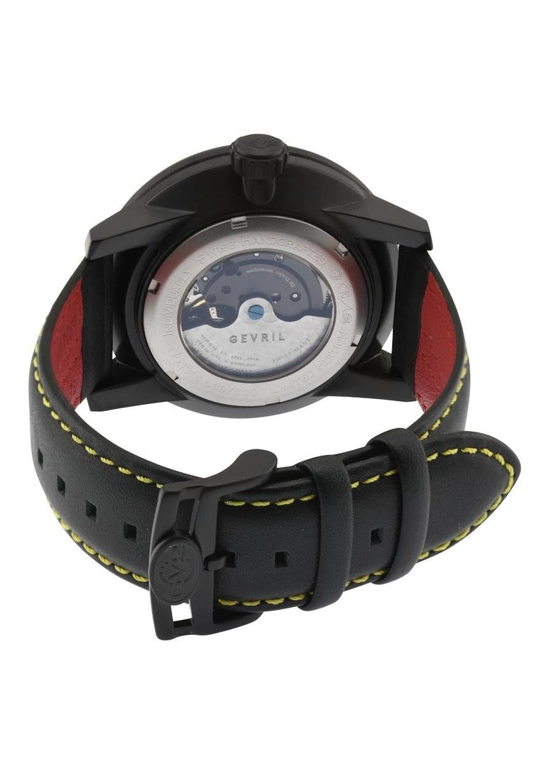 Gevril GV2 Motorcycle 1315 Swiss Automatic Mechanical Mens Black Leather Watch