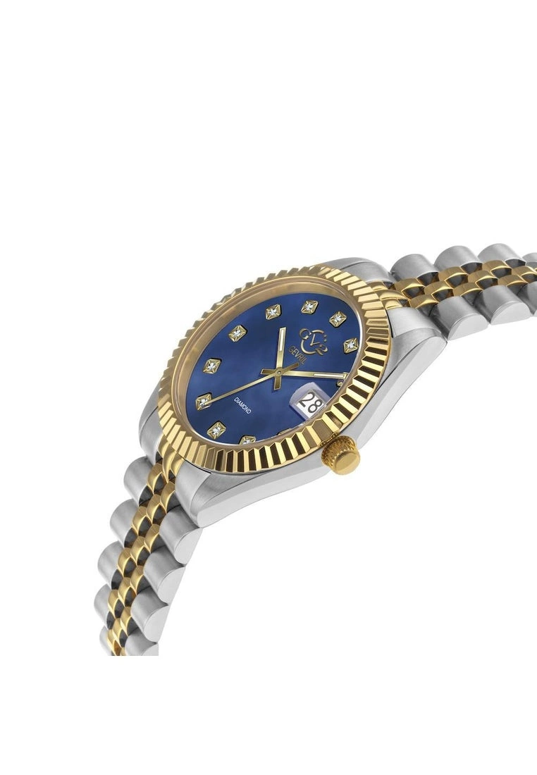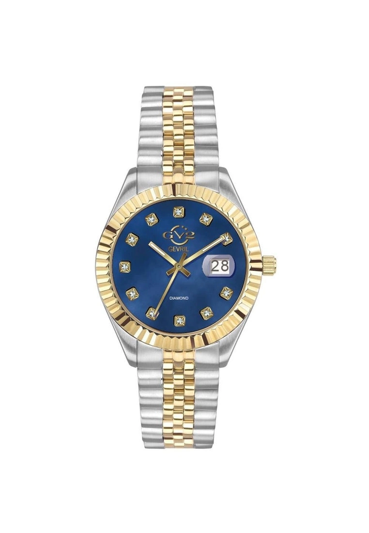 Gevril GV2 Naples 12406 Swiss Quartz Women’s Blue Dial Two Tone Stainless Steel Date Diamond Watch