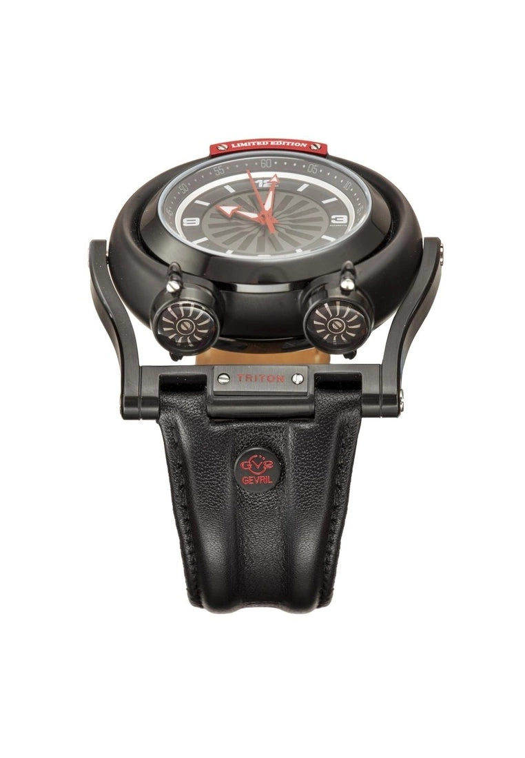 Gevril GV2 Triton Men’s Black Dial Calfskin Black Leather Watch