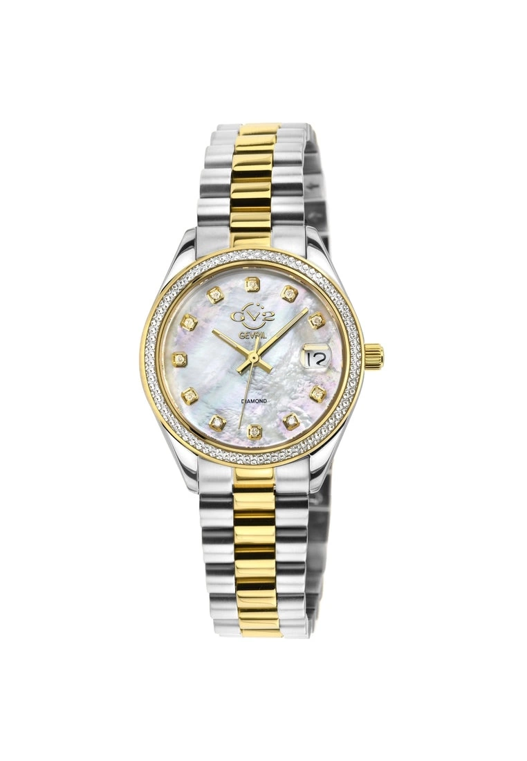 Gevril GV2 Women’s Turin Diamond,White MOP Dial, Two toned IPYG Stainless Steel Watch