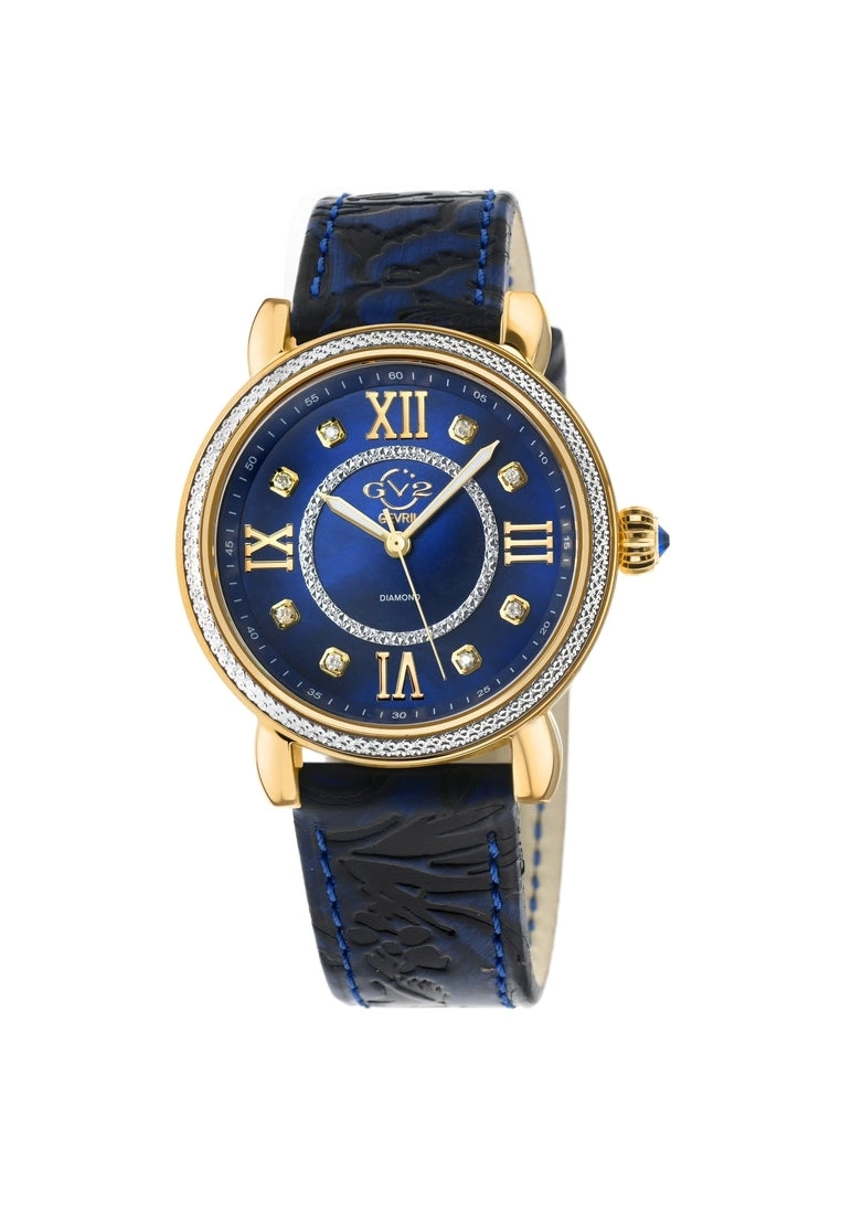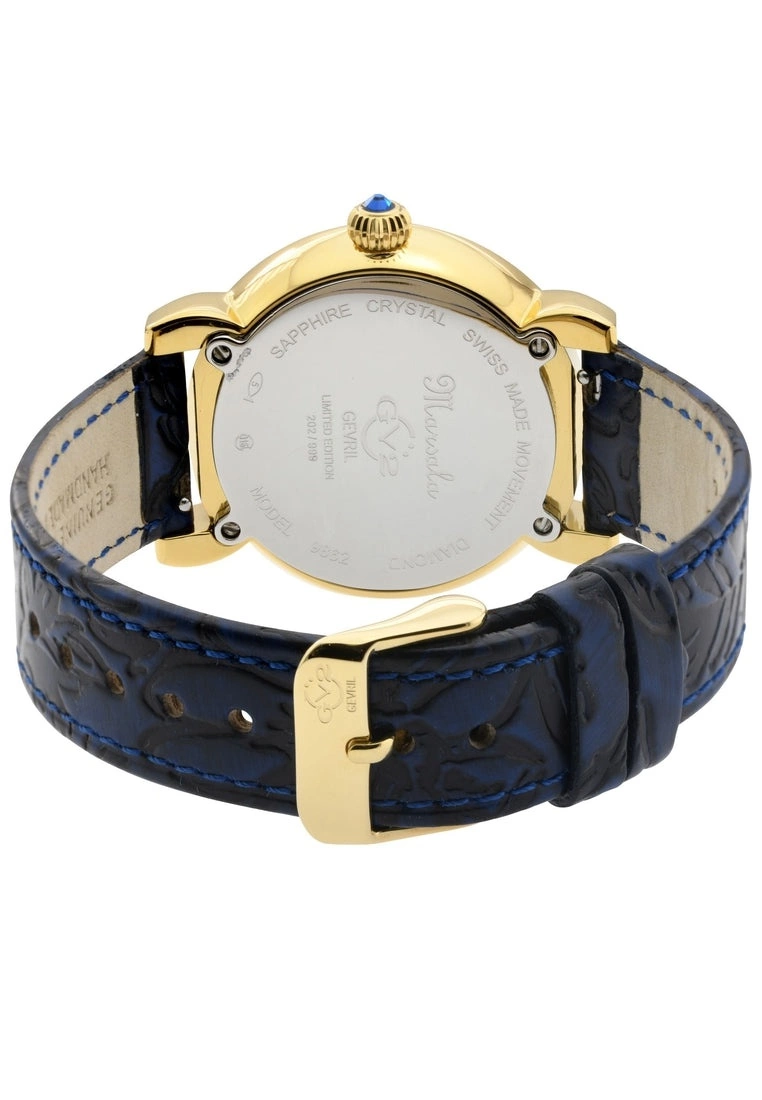 Gevril GV2 Womens Marsala 9862 Swiss Quartz Diamond Blue Leather Watch