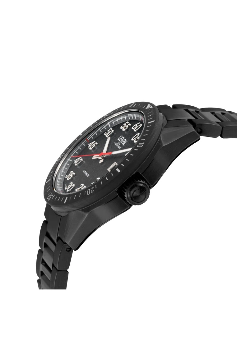 Gevril Men’s Ascari Automatic Watch SS Case, Top ring in Black Forged Carbon, Stainless Steel IPBK Bracelet