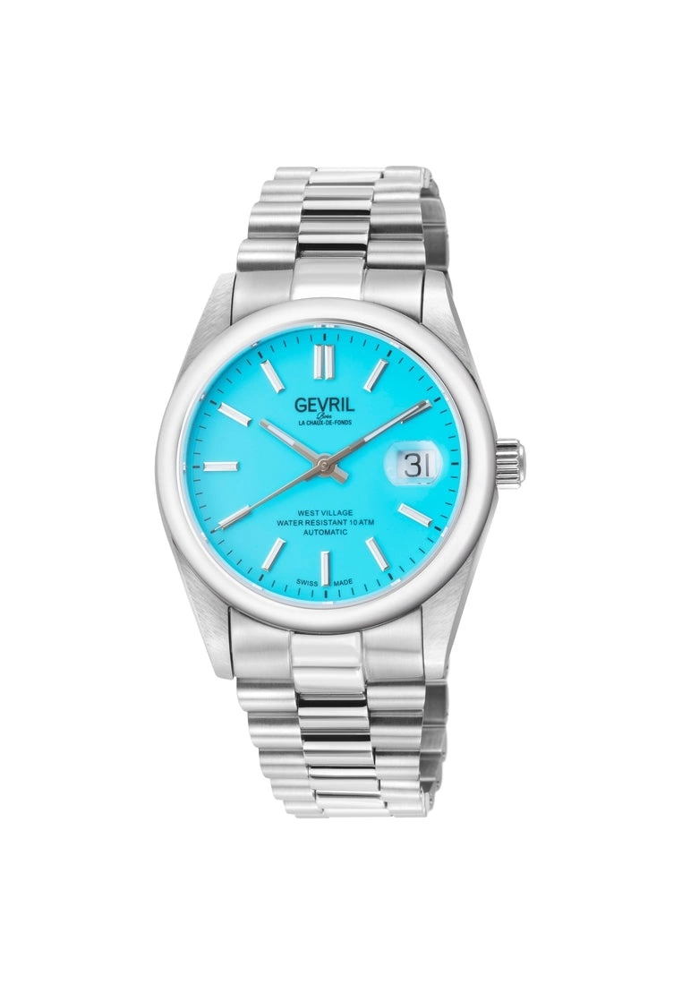 Gevril Men’s Automatic West Village Light Blue Aqua Dial Stainless Steel Bracelet