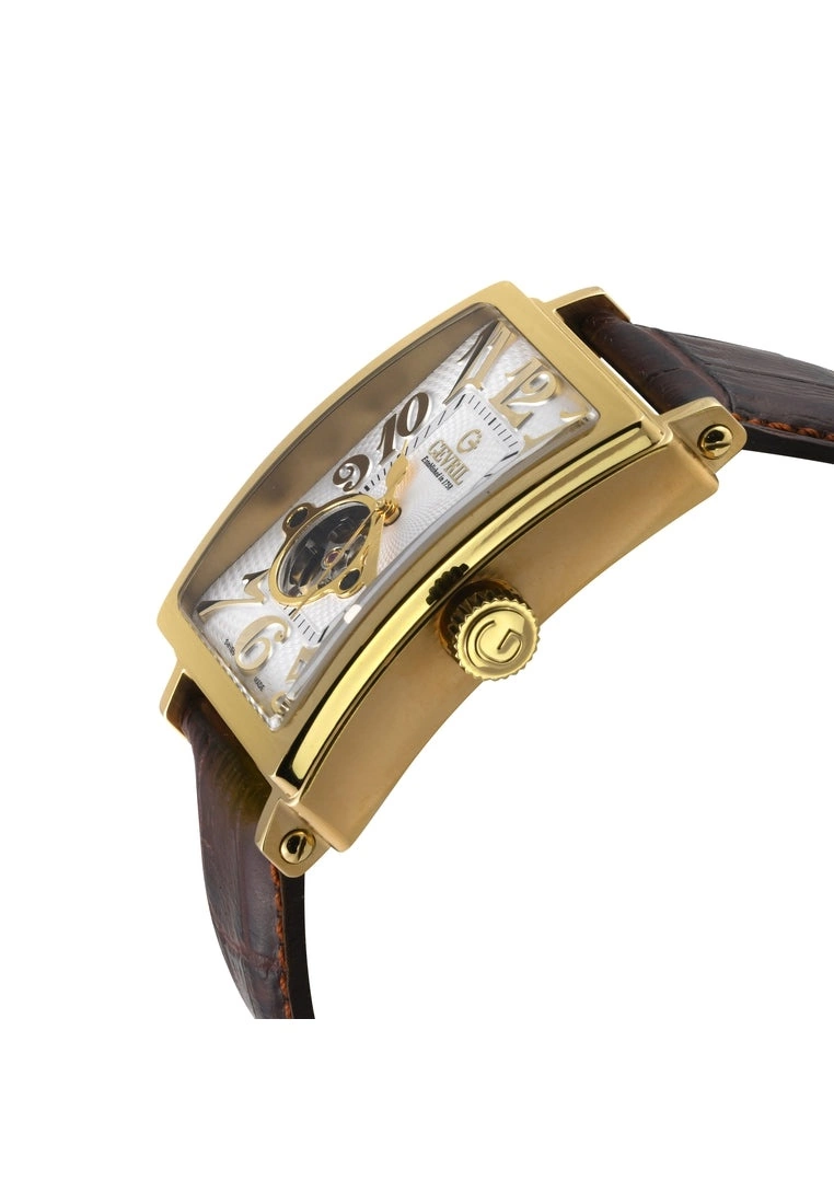 Gevril Men’s Avenue of Americas Intravedere White Dial Genuine Dark Brown Leather Watch