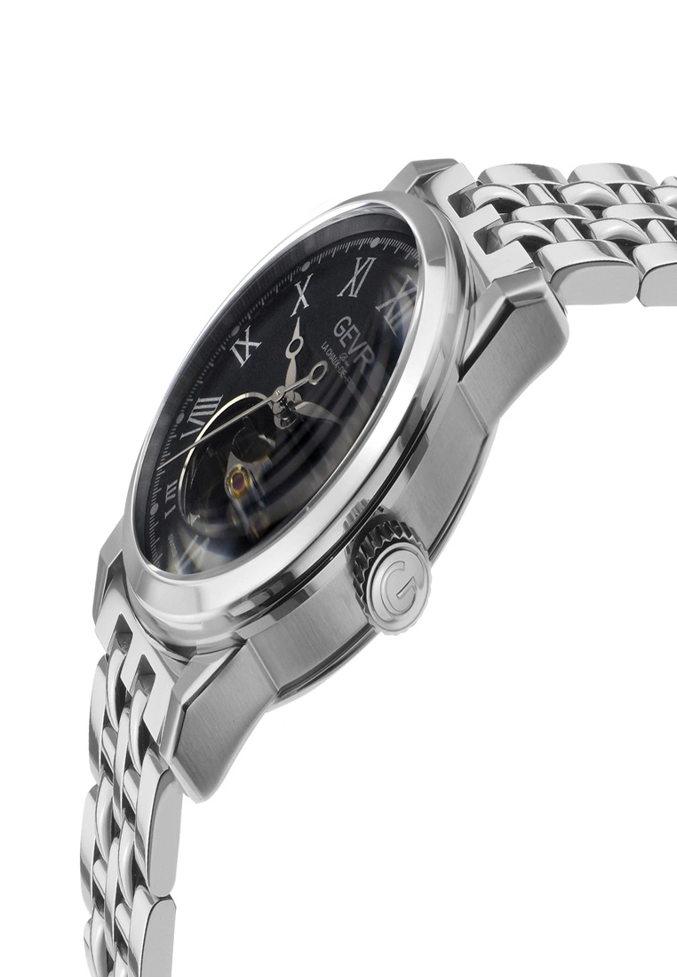 Gevril Men’s Swiss Automatic from the Madison Collection39mm Round SS Case, Black Dial with Exhibition Case BackOpen Heart Window-Limited EditionScrew Down Crown316L Stainless Steel bracelet With Deployment BuckleAnti-reflective Sapphire CrystalWater Resistant to 50 Meters/5ATMSwiss Automatic MovementÂ