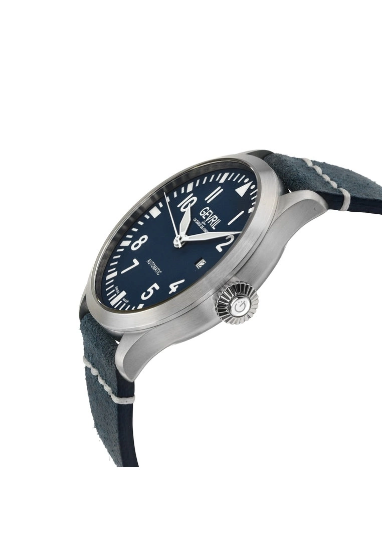 SpecificationsGevril 43503 Men’s Vaughn Swiss Automatic WatchGevril Men’s Swiss Automatic Men’s Watch from the Vaughan Collection44mm Round 316L Stainless Steel Case, Blue Dial, Luminous HandsDate at 3 o’clock, Exhibition Case backPush Pull CrownGenuine Italian Blue Leather Strap with Tang BuckleAnti-reflective Sapphire CrystalWater Resistant to 50 Meters/5ATMSwiss Made Automatic, Sellita SW200 Movement