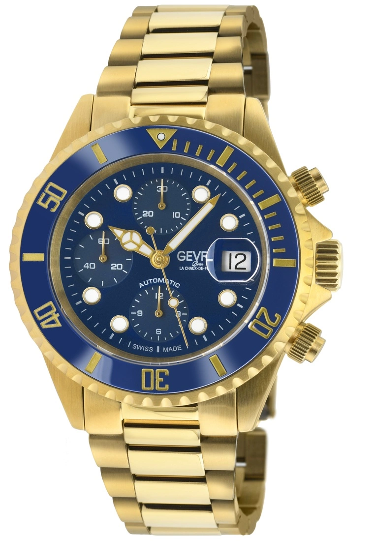 Gevril Men’s Wall Street Chrono Blue Dial Blue Ceramic Bezel 316L Stainless Steel Bracelet