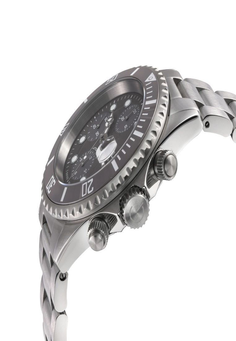 43 mm Round 316L Stainless Steel Case, Chronograph with 3 sub dials 1/8-seconds counter, 30-minutes counter, 12-hours counterUnidirectional rotating Grey Ceramic bezel, Grey Dial, Luminous HandsMagnified date window, Screw down crown316L Stainless Steel Bracelet With Deployment BuckleAnti-reflective Sapphire CrystalWater Resistant to 200 Meters/20 ATMSwiss Automatic Chronograph Movement Sellita SW500