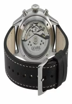 Gevril Men’s Vaughn 316L Stainless Steel Case, Black Dial, Genuine Elbamat Black Leather Watch