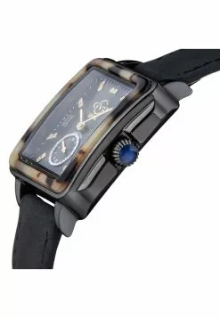 Gevril GV2 Bari Tortoise Women’s IP Black Case Black Mother Of Pearl Dial Black Suede Strap Watch