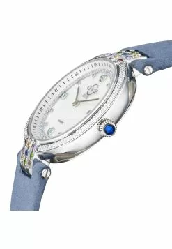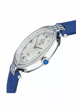 Gevril GV2 Matera Women’s Swiss Quartz White Mother of Pearl Dial Blue Suede Strap Diamond Watch